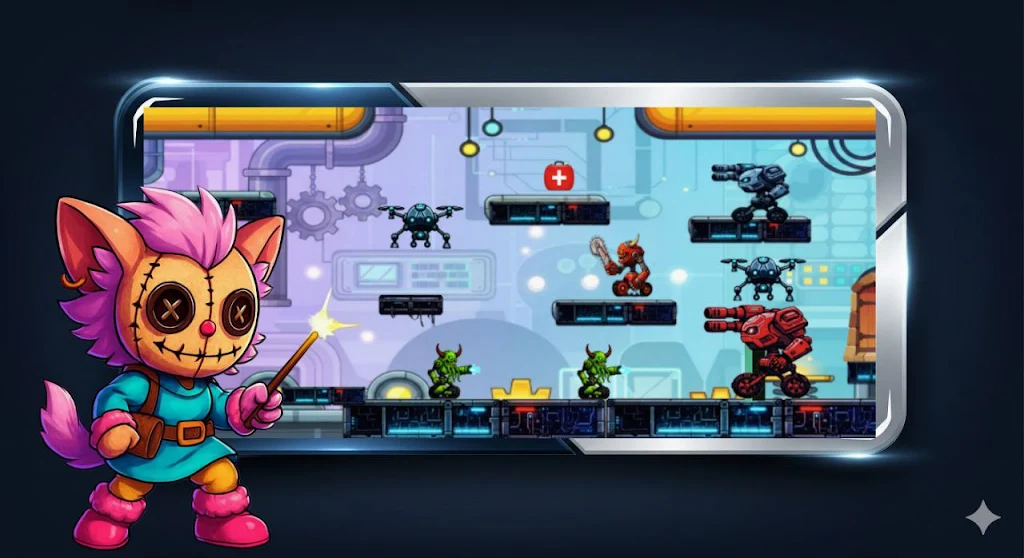 欢迎来到《魔法跑酷:拉布杜世界》,这款游戏将带你进入一个充满魔法和惊悚元素的2D平台冒险旅程。你将在这个令人兴奋的跑酷世界中,化身为传奇角色拉布杜,一位神秘的魔法娃娃。她手持强大的魔杖,利用魔法力量与各种敌人展开战斗。在这个充满挑战的环境中,你需要展现出敏捷和智慧,穿越迷人的丛林、神秘的鬼屋以及急速的机器人竞技场。