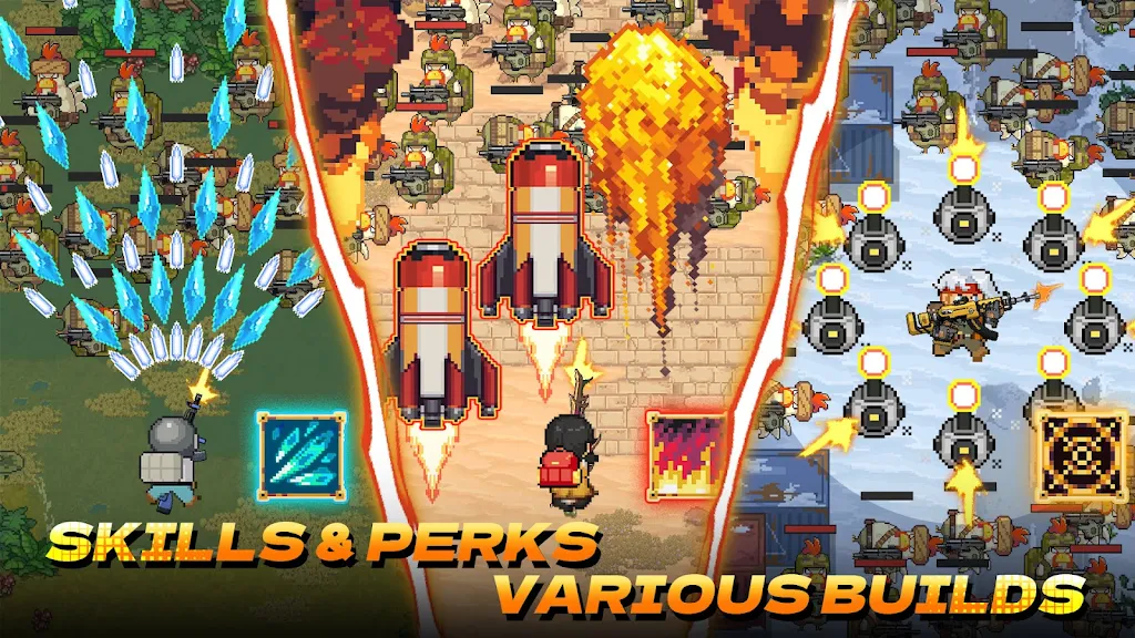 不仅仅是不断的射击,鸡城奇兵强调战略性和战术性。在每一场战斗中,你都会随机获得各种技能,使得每次对决都充满了未知数和策略考量。可以选择“连锁爆炸”,引发瞬间的大范围伤害,还是选取“子弹跳弹”来增加子弹的命中率,这些技能的组合和选择将直接影响到你在战斗中的表现。合理运用这些技能,才能在敌人如潮水般涌来的情况下,保住性命。