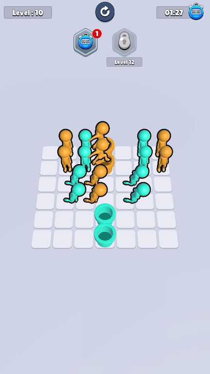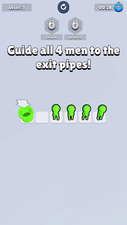 《跳进去,出去》是一款富有创意和挑战性的益智游戏,玩家需要通过滑动手指来引导火柴人进行移动。每个火柴人都有自己独特的颜色,玩家必须仔细观察并判断,以确保它们能够跳入与自己颜色相符的管道。通过这一简单而富有趣味的机制,游戏不仅考验玩家的反应速度,还挑战了玩家的逻辑思维能力。