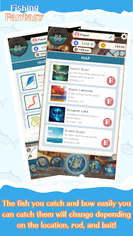 钓鱼幻想鼓励玩家不断挑战自我,捕捉不同种类的鱼类。同时,游戏中还设计了丰富的鱼饵系统,不同的鱼饵能够吸引不同类型的鱼。通过实验和采集,您可以逐步完善自己的钓鱼技巧和渔获种类。此外,所有捕获的鱼类都记录在钓鱼百科中,完整的收藏令人充满成就感。