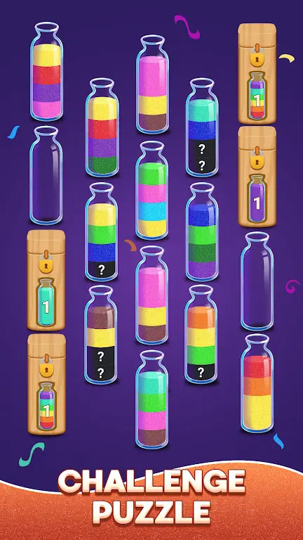 《彩沙分类挑战》中的瓶子设计独特且美观,随着游戏的进行,玩家将有机会解锁形状各异、色彩丰富的瓶子套装。这不仅增加了游戏的趣味性,还让玩家在分类沙子的过程中,收集到属于自己的美丽瓶子,感受到收获的乐趣。
