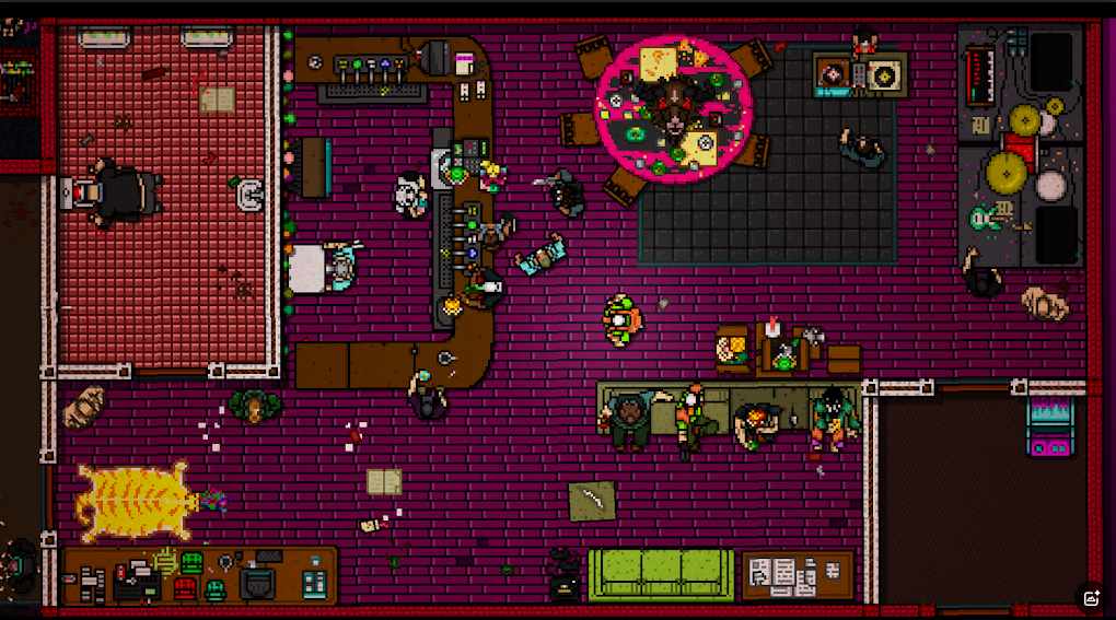 游戏中独特的视觉风格和色彩让每一个场景都充满了艺术感。热纤迈阿密2:错误号码采用了极具冲击力的画面设计,鲜艳的色彩与阴暗的主题形成了强烈对比,带给玩家强烈的视觉享受。这样的视觉效果不仅提升了游戏的氛围,还让每一次冲突都显得格外生动。