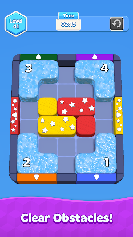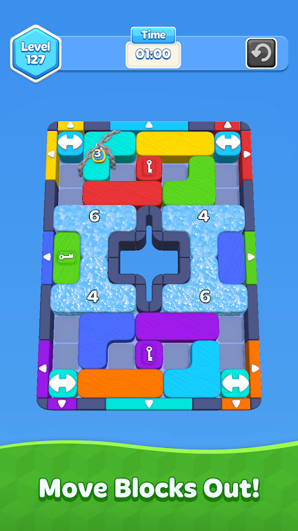在木块消消乐:色彩狂欢中,您的主要任务是滑动积木,以清除棋盘上的木块。您需要将相同颜色的方块移动到对应的门上,从而将它们取出。游戏中设置了多种障碍,例如箭头块和锁定块,使每个关卡都充满变化和挑战。策略是您在游戏中获胜的关键,合理计划每一步行动,将帮助您更快地解决谜题并获得高分。