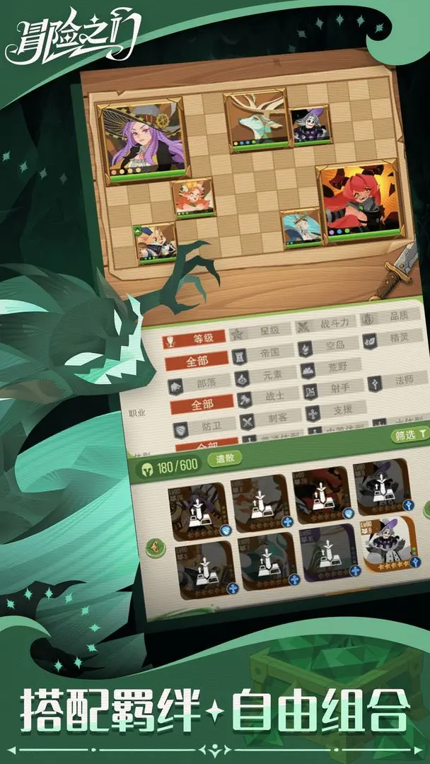 在《冒险之门》中,阵容的自由组合是游戏的一大亮点。玩家可以根据战术需求灵活选择不同的英雄进行搭配,形成千变万化的攻击与防守策略。无论是偏向进攻还是防守,玩家都有机会从大量英雄中选择最适合的组合,缔造出无与伦比的强力阵容。
