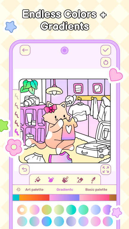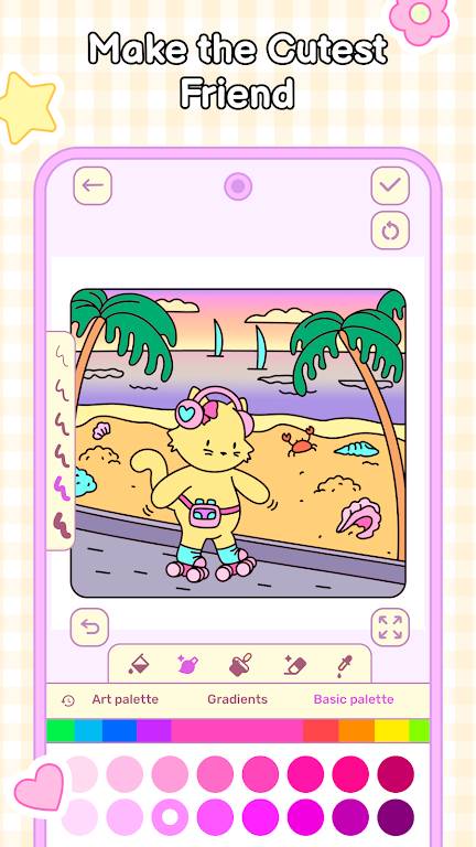在《我的可爱朋友们:涂色书》中,您拥有无尽的涂色选择。您可以随心所欲地使用渐变色、调色板和自定义色调,创造出属于自己的独特艺术作品。无论您是喜欢鲜艳的颜色还是柔和的色调,这里都能让您尽情发挥想象力。每一次涂色都是一场色彩的冒险,等待您去探索。