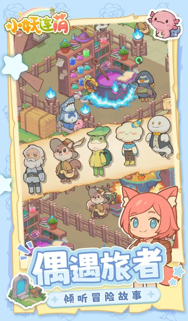 小妖连萌不仅是经营与建设的游戏,更是充满故事与秘密的冒险旅程。在你经营庄园的过程中,会遇见许多趣味横生的角色,像是背着行囊的青蛙旅人,或是无拘无束的幽灵。这些旅人将随着庄园的繁荣而逐渐揭露被时光掩埋的秘密。前任领主的去向、时空议会的隐秘等谜团,都在等待你一步步揭开。