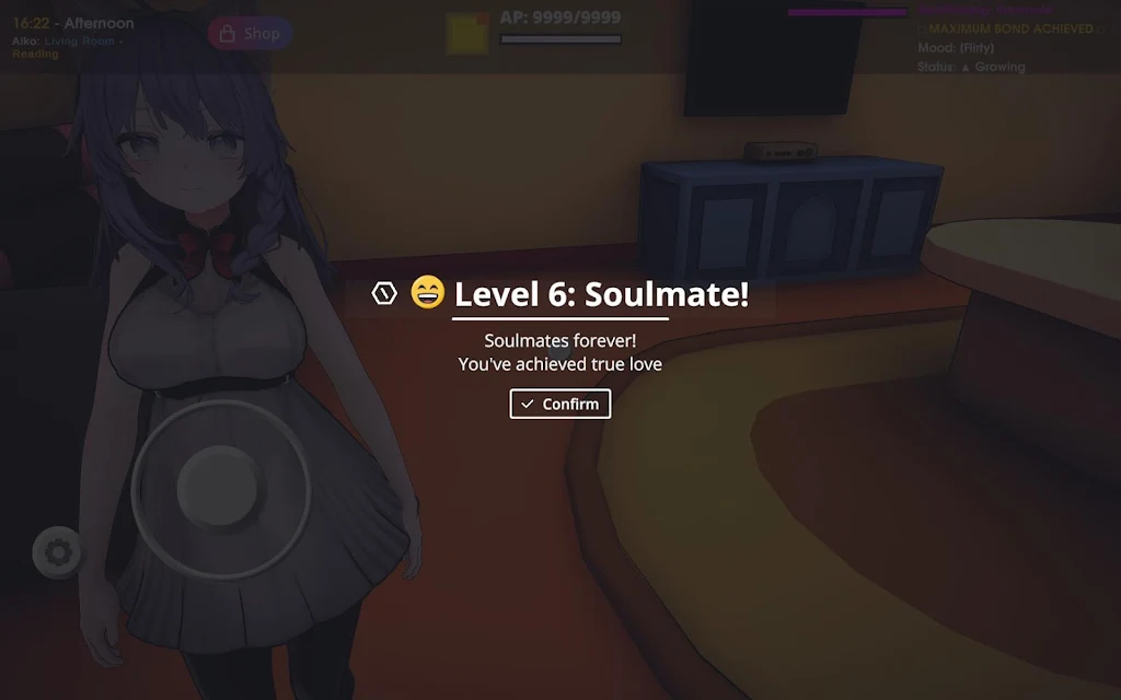 在全新的版本0.4.8中,游戏新增了触摸和肢体互动功能。玩家现在可以通过逼真的触摸检测,轻轻拍打Aiko的头、牵手,甚至有更多创意的互动方式。每一次触碰都会引发Aiko独特的对话回应,让你感受到更加真实的互动体验。