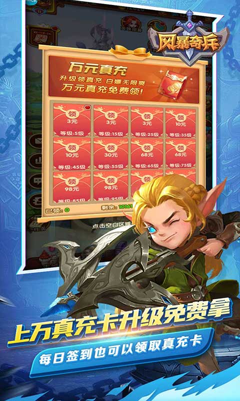 2.真充红包:万元真充卡免费拿,每日签到、主线通关掉真充盲盒;天天爆真充,零氪爽不停!