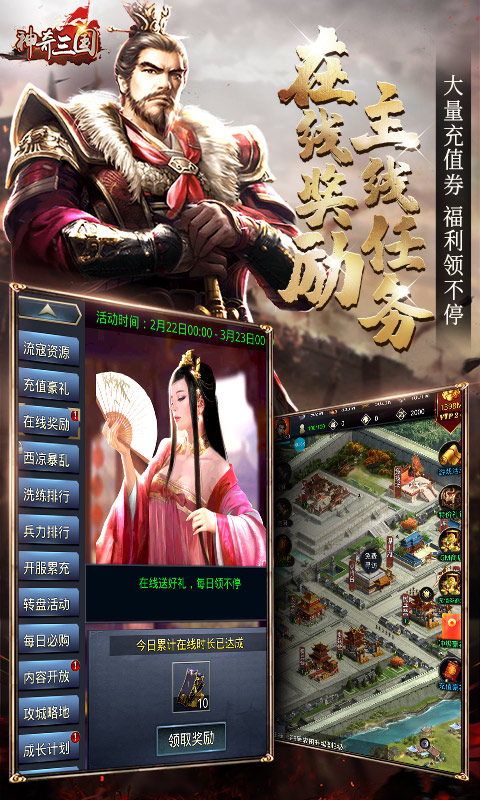 福利4:在线奖励、完成主线任务、每日签到以及冲级豪礼都可领取大量充值券,福利领不停!