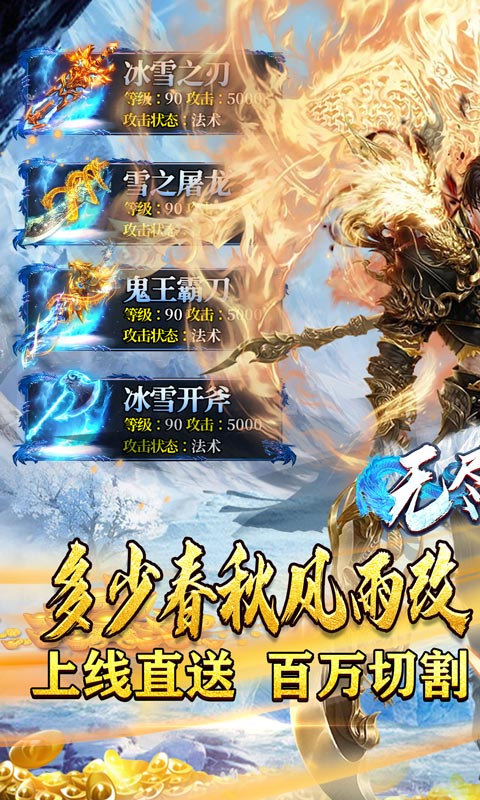 无尽寒冬(龙年破冰高爆),超变超快攻速,全新大陆等你征战!自动回收全屏吸取百万切割统统送,跨服攻城等你来战,在线还能得货币!还在等什么?赶紧加入吧!