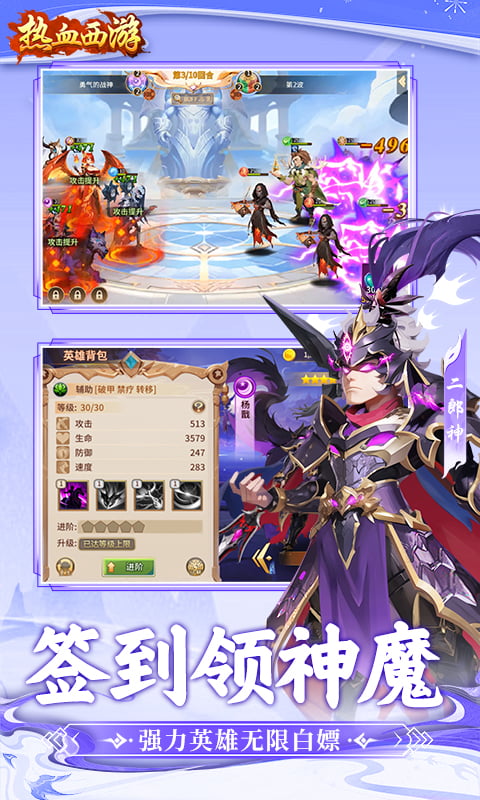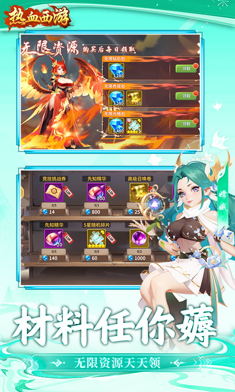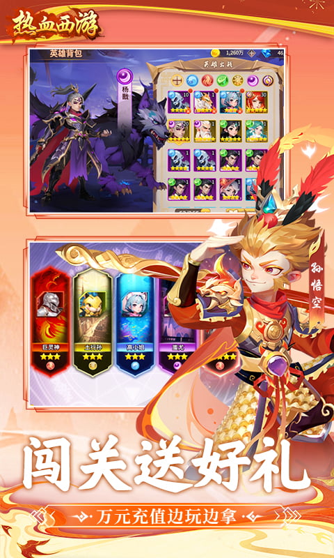《热血西游》是一款以西游世界为背景的卡牌放置手游。500年前,罗喉的魔族从魔界降临大陆,于危难之中,伟大的大地皇者集齐传说中的五大神器,以驱逐魔族的名义,组建先知圣殿。就在人类即将大获全胜之时,罗喉发动了蓄谋已久的魔化天下,企图让永恒的黑暗降临世界。大地皇者以生命为代价,借助五大神器将之禁锢。但魔主罗喉不死,黑暗不灭。“唯有异界之人,方能驱逐黑暗”。遵循着女娲后人的最终预言,异界之门被打开,大陆也迎来了新的冒险时代。传说中集齐失落神器,重新封印魔主罗喉,你终于来了皇者殿下!顺着女娲后人的指引,你一定可以再次封印魔族,拯救世界。