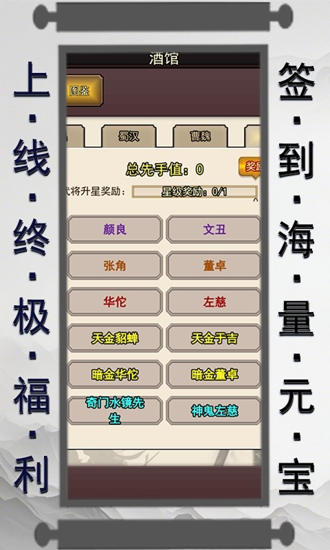 这是一款复古怀旧的文字三国挂机游戏,陪你燃起曾经街机争霸的激情!独特的文字版画面让你流连忘返,传统闯关玩法满是回忆。超多三国名将等你召唤,无敌神将震撼来袭,开启你的争霸之路!