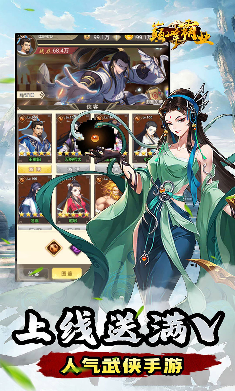 这是一款全新武侠手游,你在游戏中将扮演侠客搭配自己心意的武侠队伍,冲向武林之巅。游戏内超低0.05折优惠全新来袭,上线满V,巅峰开局送88万资源。全新霸服,百倍返利,赠送海量奖励。让你体验前所未有的武侠卡牌玩法,全新玩法,白嫖各种特权,沉浸式体验,超级炫酷的武功打斗画面,赶紧泰裤辣,赶紧成为武林盟主吧。