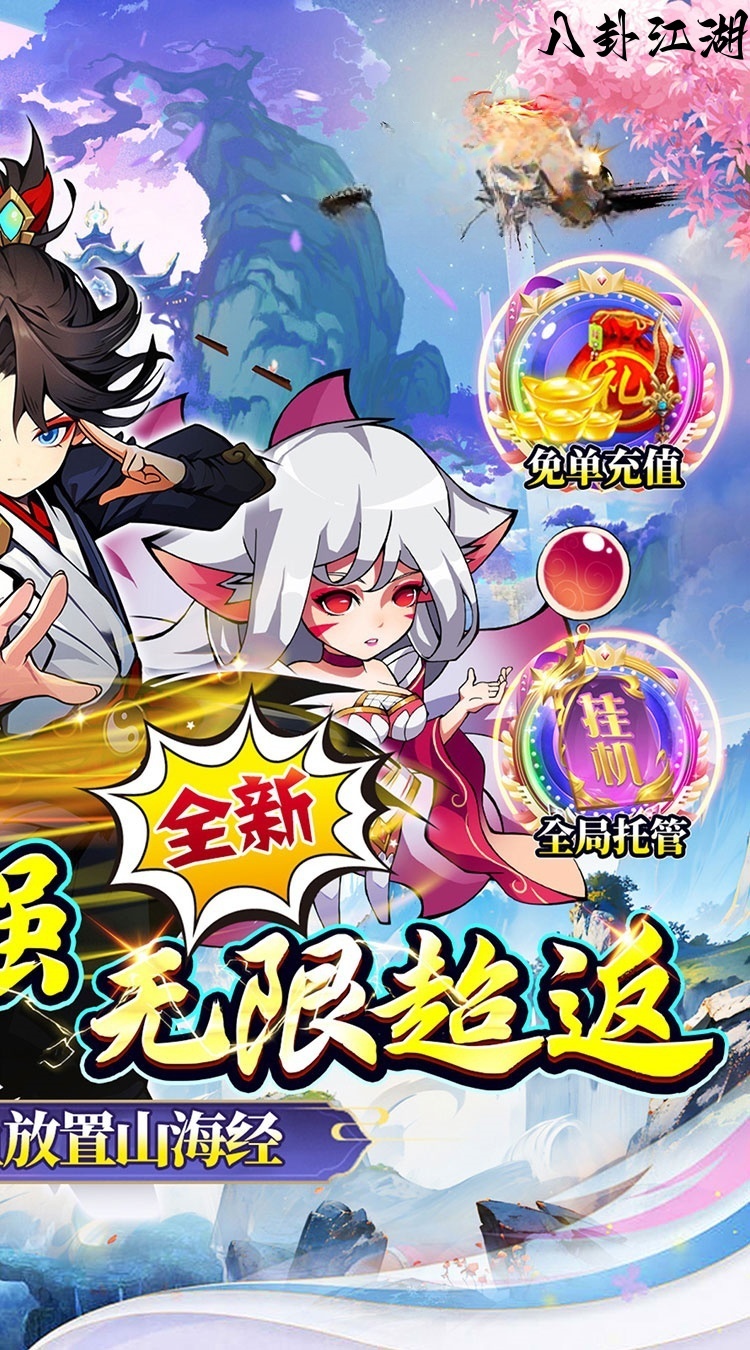 《八卦江湖(咸鱼山海经0.05折)》是一款高度还原山海经的咸鱼放置卡牌游戏。游戏中可以收集到众多的奇珍异宝和山海神兽,玩法轻松休闲福利全面升级,还有超多免费充值燃情助力。革新融合多重PVE、PVP玩法和趣味养成路线,全自动托管让游戏变得更为简单,即刻开启全新山海旅程!