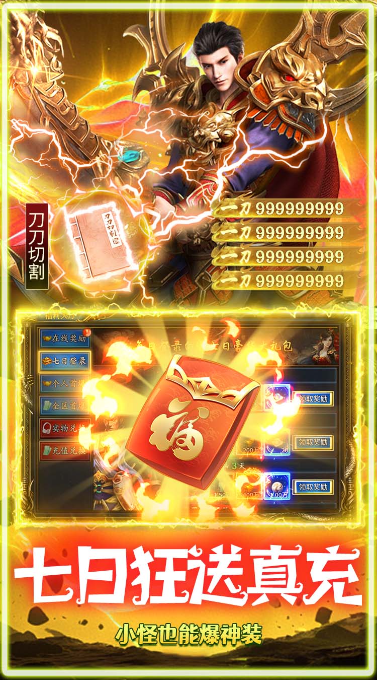 1.创角即送切割神装;会员卡;10万元宝。