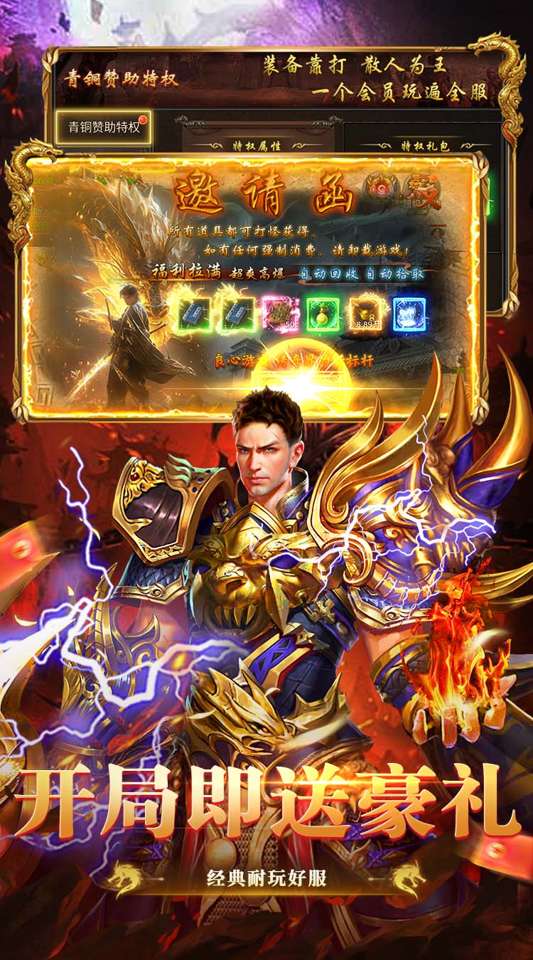 1.开局福利:开局送开天斩、逐日剑法、超级祝福油
