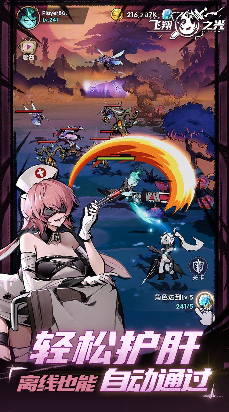 全新0.1折手游《飞翔之光》来啦!游戏融合了大量传统RPG要素及放置玩法,玩家将在这个充满惊奇和危险的世界里,扮演一个失去了自己头颅的骑士,遇到各种各样的敌人和环境,从广袤森海到火炎地狱,从绝望沼泽到深海牢笼,去寻找属于你的那个头颅!