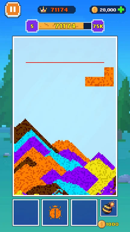 在《落沙:爆破砖块》中,玩家会在一个充满像素风格的沙堆环境中展开冒险。你需要将不同颜色和形状的方块放置到合适的位置,利用沙子的物理特性,触发消除机制。只有相同颜色的沙堆才能成功合并为一体,变成消失的砖块,给你带来丰厚的分数。随着关卡的提升,玩家将会面临越来越复杂的布局挑战,需要在有限的时间和资源内进行灵活的操作,考验你的思维敏捷度和策略能力。