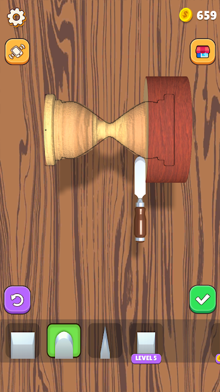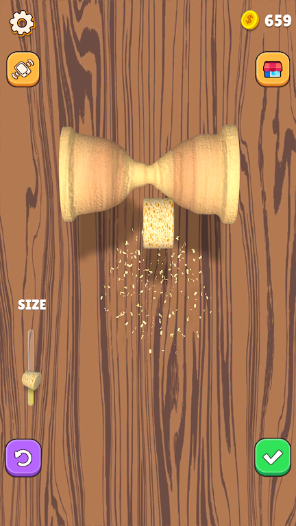 在DIY木工这款游戏中,您将体验到一种独特而悠闲的创作过程。您从一块简单的木块开始,跟随引导图案,逐步将其雕刻成各种精美的形状。每一个动作和每一刀下去都充满了乐趣与满足感,让您在享受创作的同时放松心情。