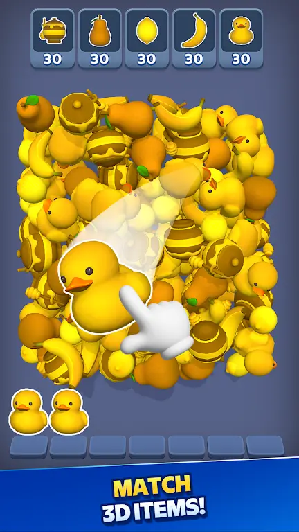 全品超市:3D商品匹配是一款独特的消遣益智游戏,让您在轻松愉悦的氛围中,尽情享受整理和匹配的乐趣。游戏中,您将面对各种可爱的3D物品,它们散落在集市的各个角落。只需简单的点击,您就能将三个相同的物品匹配在一起,随后,目睹它们迅速消失,并整齐分类。