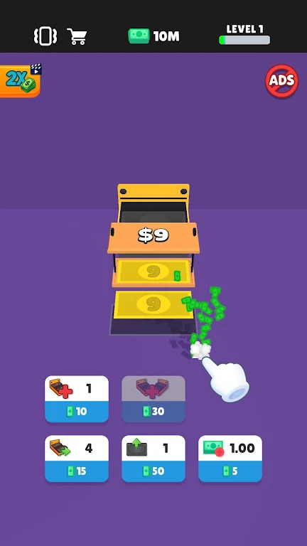 在《印钞狂热》中,玩家将从一台基本的印钞机开始,他们需要通过不断的点击来推动金钱的生成。游戏简单易上手,但提升自己的印钞产量与财务管理则是一个颇具挑战性的任务。随着你积累的财富越来越多,玩家将会有机会解锁更高级的机器,拓展自己的财富版图。