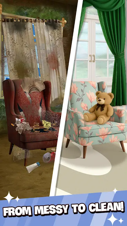 《家居清洁:满足》为您提供流畅的操作体验,您将可以轻松修复家具、墙壁、屋顶和壁炉等室内元素。每一个细节都被精心设计,符合真实的装修过程。通过直观的触控操作, 您可以迅速上手,即使是新手也能在短时间内掌握翻新的技巧。这种简单而又直观的操作让您的装修过程更加轻松愉快。