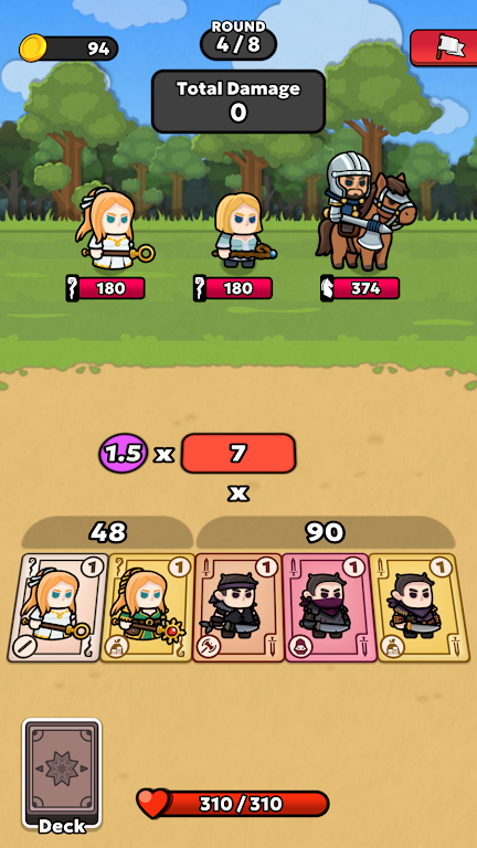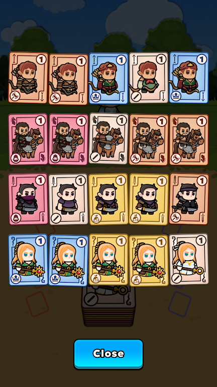 在游戏中,您将不断与敌人碰撞,并在此过程中构建和升级您的牌组。每种卡牌代表一个独特的单位,分别归属于四大类:近战、远程、骑马和魔法。这些单位都有各自特殊的能力,您需要根据敌人的特性来选择搭配,从而最大化输出和防御效果。
