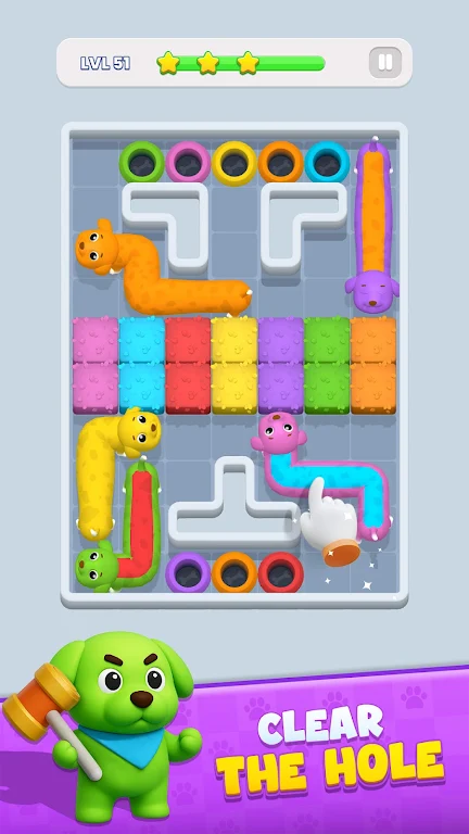 在《狗狗逃脱》这款充满创意和乐趣的解谜冒险游戏中,玩家将与一群活泼可爱的狗狗们共同展开一场令人兴奋的旅程。这些小狗们个性十足,色彩斑斓,每一只都在找寻属于自己的逃生之路。它们有的可能因为好奇而迷失方向,有的则在探索中需要你的帮助。你能否带领这些狗狗安全到达它们各自的颜色匹配逃生洞?