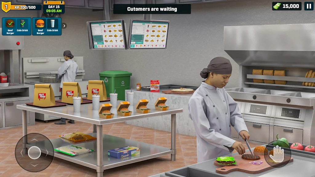 在《厨师模拟器:快餐游戏》中,玩家将享受到丰富多样的烹饪体验。你可以尝试制作各种美味的快餐,包括招牌汉堡、香脆薯条、诱人披萨与清凉饮料。每一种食品都有独特的制作方式和食材搭配,要求玩家们在快节奏的环境中精准执行食谱。食材的新鲜与料理的技巧决定了最终的食品质量,直接影响顾客的满意度。