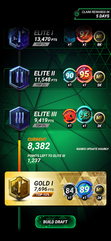 游戏新增了精英EVO和标准EVO系统。每周都有新一批精英卡牌出现,让你可以将特定球员提升为游戏中最顶尖的卡牌。同时,玩家也可以选择自己想要升级的标准EVO卡牌,完成特定的要求后即可解锁。这样的设置为玩家提供了更多的个性化发展空间。