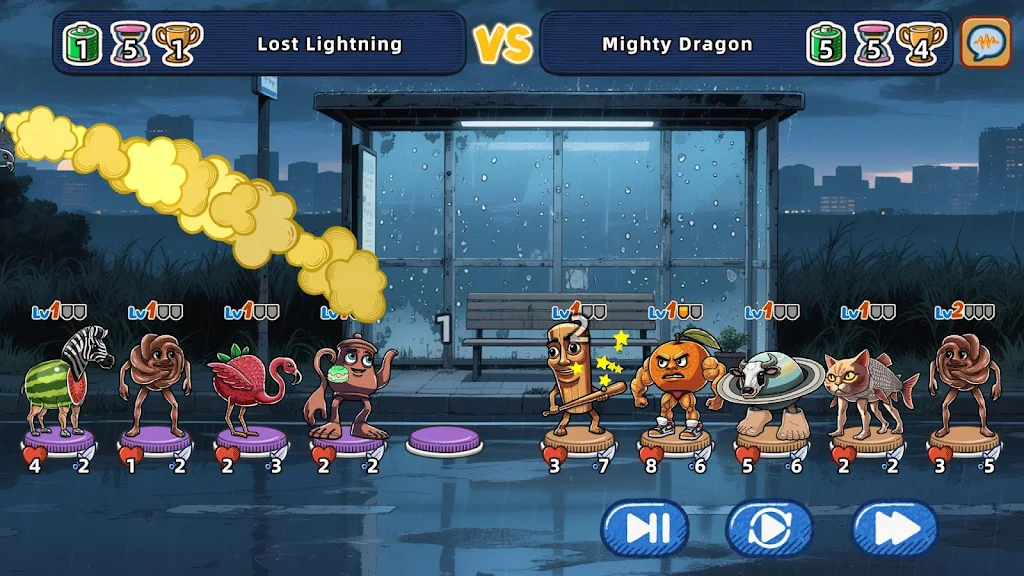 在战斗中,利用不同的道具可以帮助你扭转局势,增加胜率。游戏中设有12种独特的赛博食品道具,每一种都有明确的增益效果。比如,动物饼干可以提高单位的攻击力与生命值,而三色肉卷则能减少单位所受到的伤害。这些道具的搭配运用,让战斗更加富有策略性和趣味性。