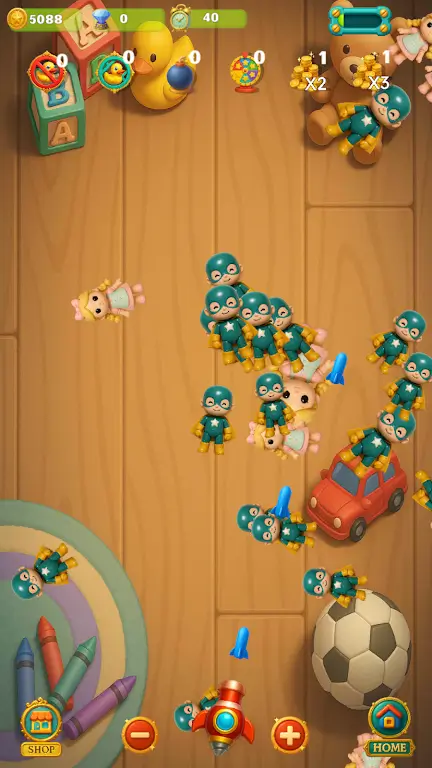 在《玩具冲击波:战斗室》中,战斗并非单调的射击。玩家需要利用环境,巧妙躲藏在书籍、积木以及玩具墙后,激烈的战斗瞬息万变。弹跳子弹划破空气,敌人凭借聪明的战术反击,考验着你的反应能力与战术规划。快速且紧张的节奏让每场战斗都充满了不可预测的乐趣。