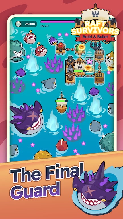 玩家可以在木筏上建造各种自动炮塔和防御模块,形成强大的火力覆盖。通过组合与升级不同的武器模块,能够创造出强悍的火力输出,迅速消灭不断袭来的海怪。这种弹幕式的攻击模式不仅令战斗更加激烈,还强化了玩家对于战斗节奏的掌控感。