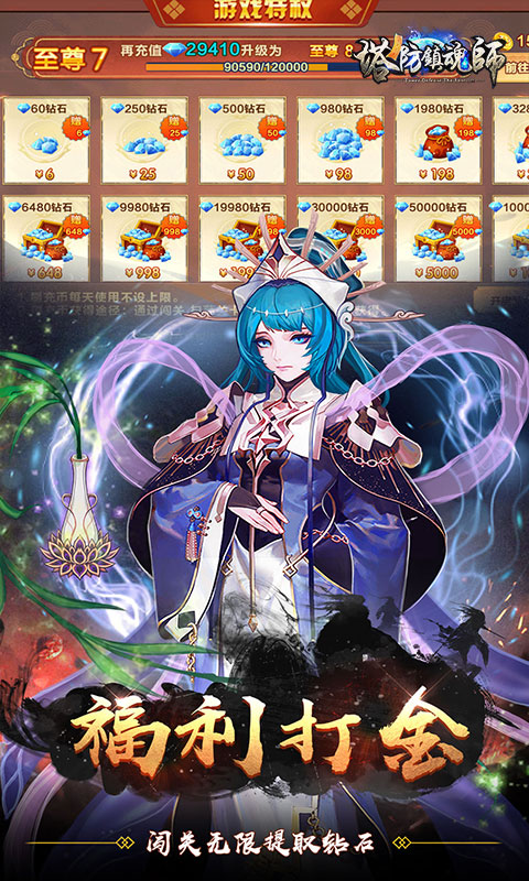 高福利三国策略塔防手游《塔防镇魂师》0.1折全新来袭!创角即享0.1折充值,还能直升VIP15,领绝版称号、千万钻石,开局即巅峰!闯关掉落福利币,兑换钻石无上限,永久有效,轻松发育不卡关!此版本特权加量不加价,福利币存储上限加倍!内置超级助手,自动升级、一键布阵、挂机养成,轻松躺赢不费力!魔乱三国,汉室将倾,妖道张角以邪术召来无尽妖魔,天下危在旦夕!你将集结三国英豪,共筑御魔防线!排兵布阵、巧设箭塔,在变幻莫测的塔防地图中,打造属于你的不破长城!玩法不止塔防,更有竞技场、神兽秘境等多元副本,随时点燃你的热血与谋略!即刻下载,改写天命!