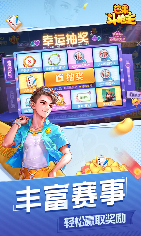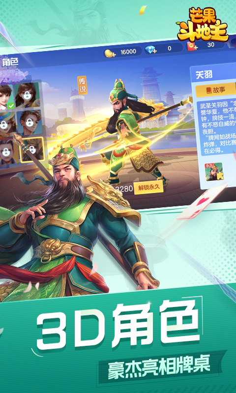 【华丽界面 赢翻全场】古今3D角色亮相牌桌,炫酷界面打牌流畅体验,小芒果带你一路赢金豆,走向巅峰!