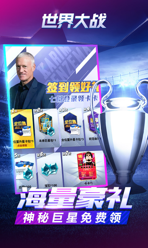 在这里你可以与传奇巨星并肩而战,续写他们的传奇故事!亦可带领足坛新贵创造崭新的篇章!无需下载,点击即玩,不肝不氪,只需利用碎片时间即可享受足球竞技的魅力。已预约用户在游戏上线后享有WIFI智能下载能力。