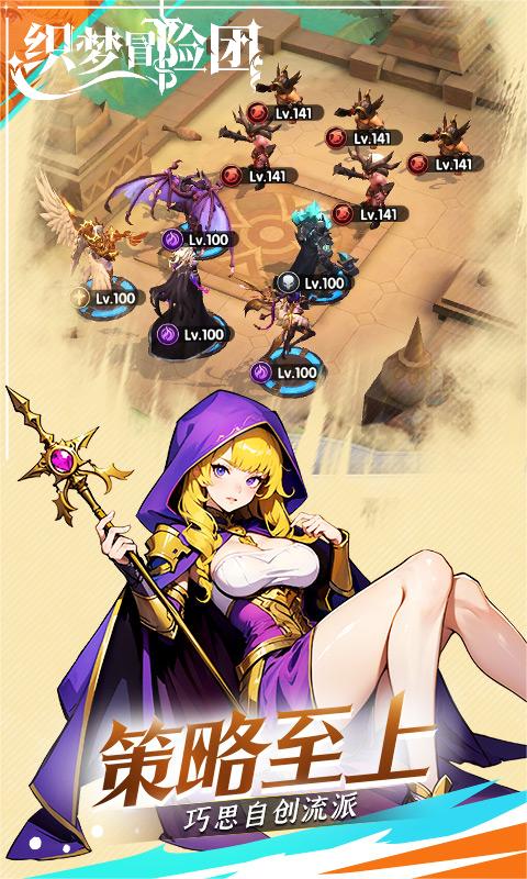 《织梦冒险团》是一款奇幻风格放置类卡牌手游,游戏讲述了在一个魔物盘踞的奇幻世界中,远古的混沌力量再次降临到这片大陆之上。玩家将扮演冒险团团长一步步从家园出发,解决威胁这个世界的混沌大敌,最终拯救帝国与家园于危险中。