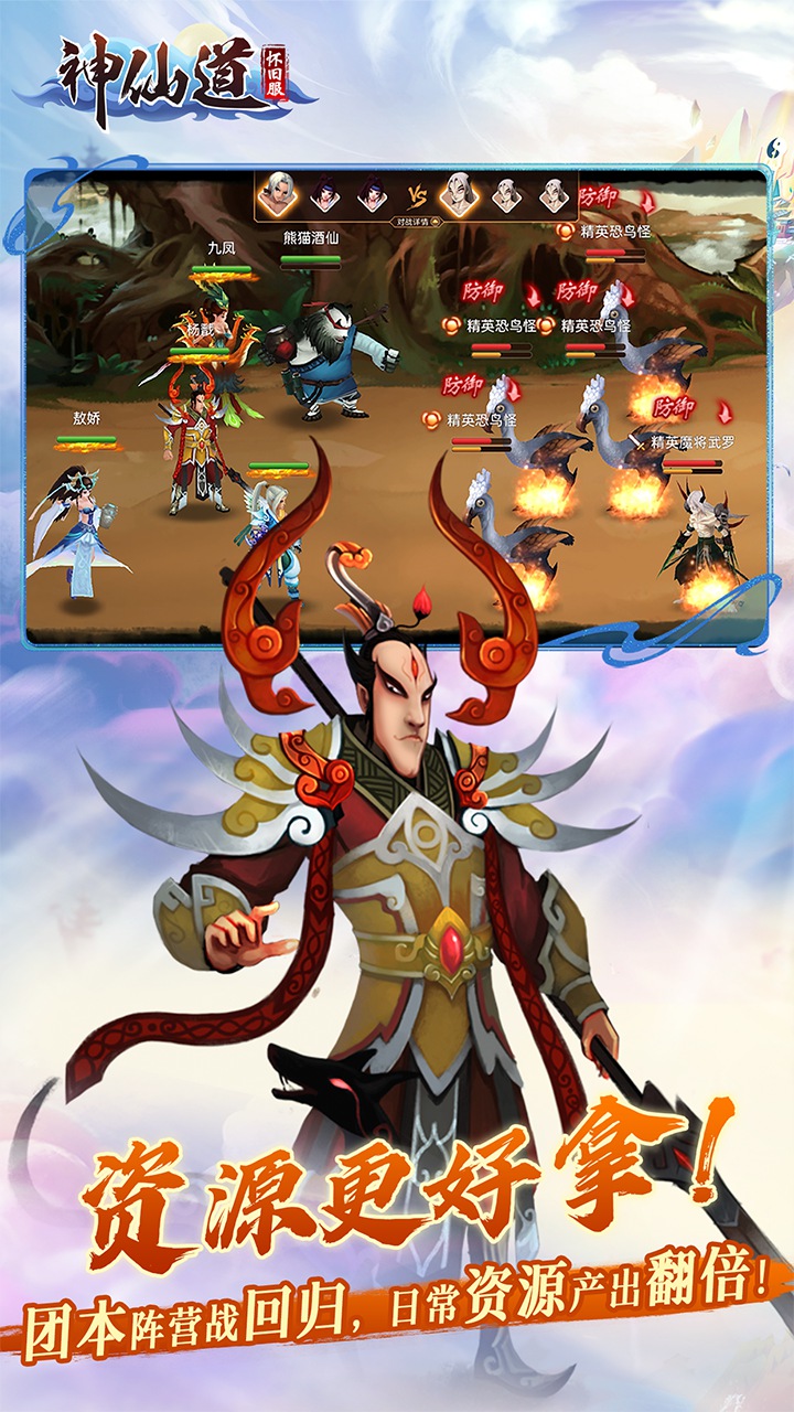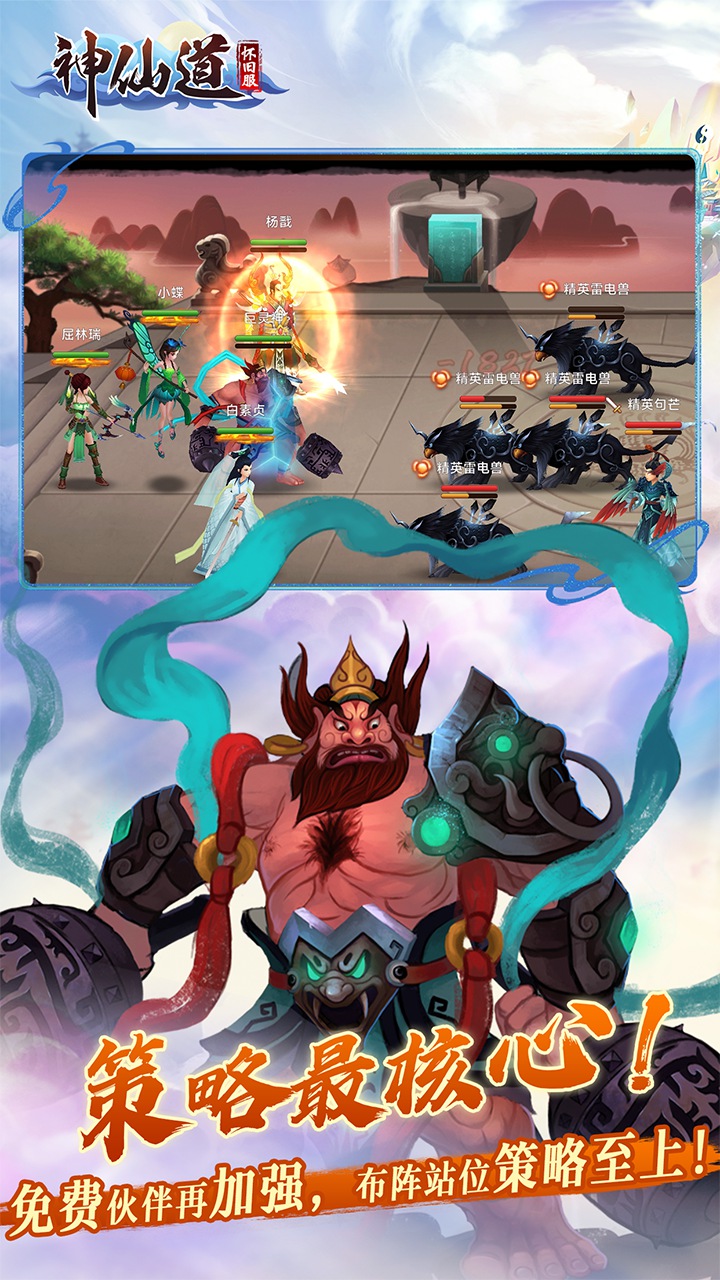 《神仙道》经典怀旧版与你踏上仙旅! 《神仙道》原班人马倾情奉献,带你体验统治仙界的不朽传奇!!! 失却之阵伙伴:祝融、雷公、明月 等待你的招募! 藏经阁:术士、将星、武圣、剑灵、飞羽,全新五大职业自由切换! 还有主角圣形态,脱凡入圣的圣伙伴等待你培养! 仙道会:巅峰之战,谁将主