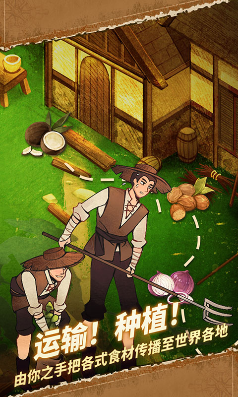 在贸易和交通不发达的过去,人们能获取到的食材种类极少,平民通常只能吃到由谷物制成的稀粥,这类原始饮食只能饱腹且营养单一。而你的任务,是通过海上贸易、 建立航路、生产食材等方式,让人们可以用更多的食材做出营养均衡的菜品,让这个世界进入营养饮食的时代!