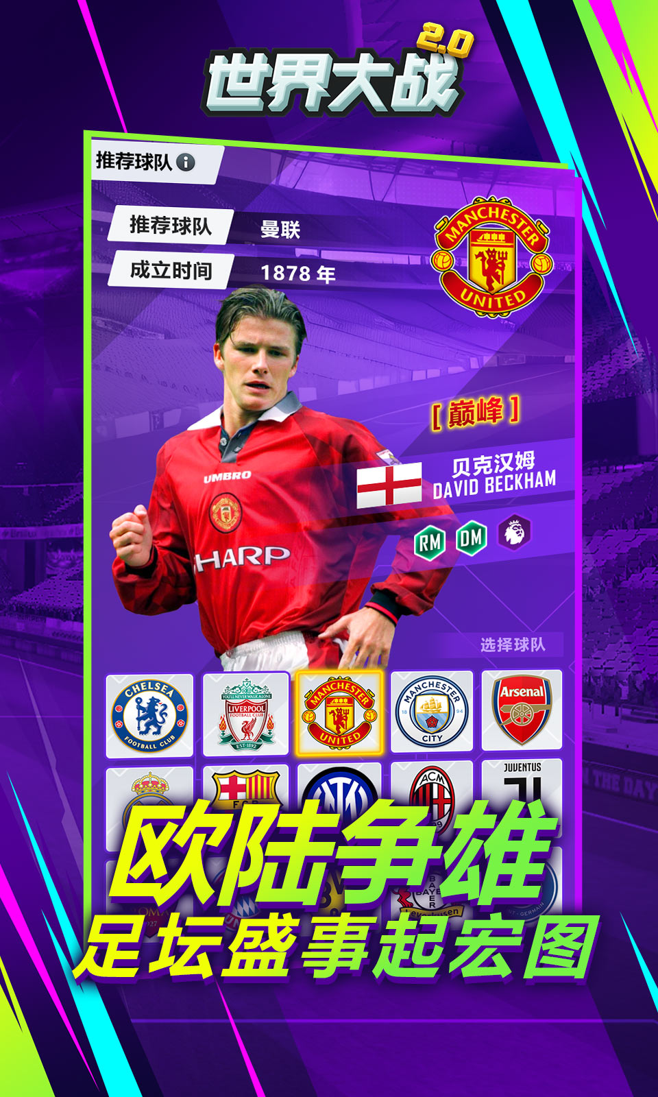 欢迎加入《世界大战》,全新玩法等您开启!在这里您将化身为球队经理,真实模拟球队运营,自由搭配球队阵型和引援,球馆球场球员全方面都由你来定制!打造一支属于你的冠军之师!更有诸多福利活动等待你来参与!各位优秀的经理人,快来《世界大战》打造你的豪门阵容吧!