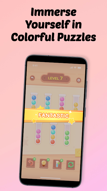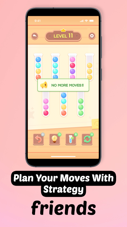 在《彩色球管道》中,玩家需要通过点击管道,将顶部的彩色球移动到其它管道。关键在于,只能将相同颜色的球叠加在一起,通过合理的规划,调整每一个步骤,最终完成每个管道只包含一种颜色的目标。操作简单,但要达到更高的水平与分数,玩家必须善用逻辑推理和策略规划来应对每一个关卡带来的不同挑战。