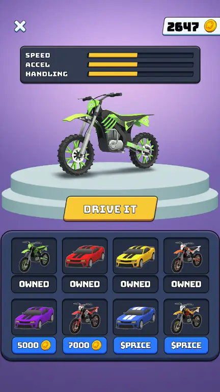在《摩托漂移大师:极速竞速》中,你可以通过漂移和比赛收集金币。这些金币是你解锁新摩托车和更强力车辆的重要资源。随着你技术的提升,驾驭更快的摩托车将帮助你在比赛中获得优势。每一次成功的漂移都会增加你的金币收入,激励你不断挑战更高的目标。