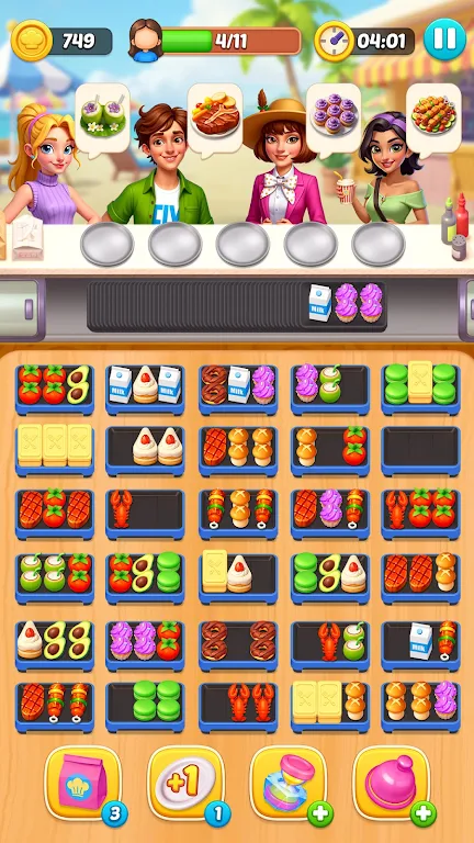 《开心厨房分类》采用简单且直观的玩法。玩家只需要通过滑动屏幕,将三个或更多相同的食物图标连接在一起,以此来完成客户的订单。这种排序方式不仅易于掌握,而且能引导玩家迅速进入沉浸式的解谜体验。随着游戏的进行,你将面临越来越具挑战性的关卡,每一关都设计了独特的目标与解决方案,让你在快乐中不断进步。